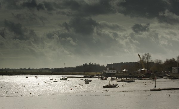 Woodbridge, The Quay, Melton the River Deben and the Tide Mill. The Quay at Woodbridge is often home to restored local oyster and dredging Smacks.